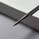 Forma - "liepsnelė", aštresnis abrazyvas tinka manikiūrui ir pedikiūrui. Raudono žymėjimo