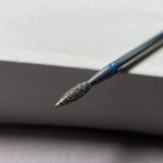 Forma - "liepsnelė", aštresnis abrazyvas tinka manikiūrui ir pedikiūrui. Mėlyno žymėjimo